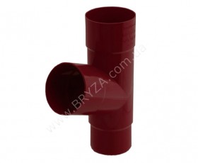 Тройник трубы водосточной, цвет красный / RAL 3011, BRYZA (БРИЗА), предназначен для соединения двух водосточных труб диаметром 90 мм, в одну трубу диаметром 90 мм под углом 67 градусов.