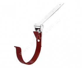 Держатель желоба прямой регулируемый, цвет красный / RAL 3011 служит для удержания желоба 125 мм, чаще применяется на тех кровлях, где не планируется использование лобовой доски и концы стропил остаются на виду. Держатель позволяет регулировать водосточный желоб по длине выступа со стропильной ноги и высоте крюка фиксируещего водосточный желоб.