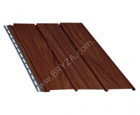 Софит (сайдинг) перфорированный, цвет орех, используется для внешней отделки карнизов. Сайдинг обладает перфорацией, для вентиляции подкровельного пространства. |