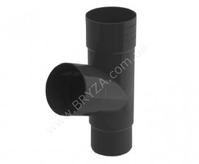 Тройник трубы водосточной, цвет графит / RAL 7021, BRYZA (БРИЗА). предназначен для соединения двух водосточных труб диаметром 90 мм, в одну трубу диаметром 90 мм под углом 67 градусов. Применяется в системе BRYZA 100 mm и системе BRYZA 125.