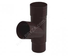 Тройник трубы водосточной, цвет коричневый, BRYZA (БРИЗА). предназначен для соединения двух водосточных труб диаметром 90 мм, в одну трубу диаметром 90 мм под углом 67 градусов. Применяется в системе BRYZA 100 mm и системе BRYZA 125.