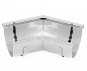 Угол желоба внешний, цвет белый / RAL 9010, предназначен для соединения водосточных желобов D 125 мм под внешним углом 135 градусов. В основном угол 135 градусов применяется для соединения желобов на пирамидальных кровлях. Стандартный угол 135 градусов имеет 10-скатная пирамидальная кровля.